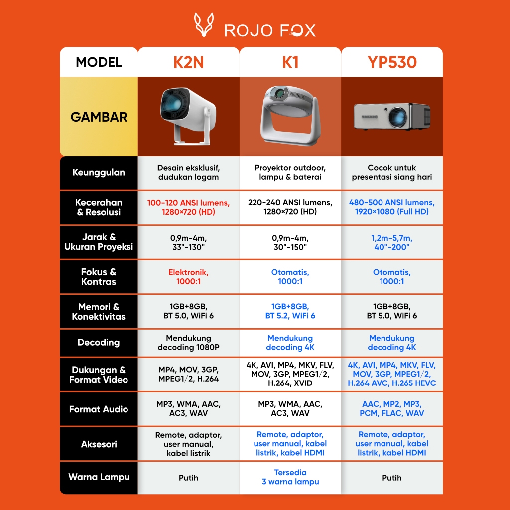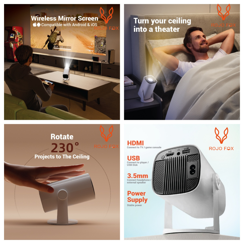 [Star]ROJO FOX K2N Proyektor Mini Android Hp Ke Dinding Smart Portable - HD 600p, Bluetooth & WiFi, 240 ANSI - sbr10