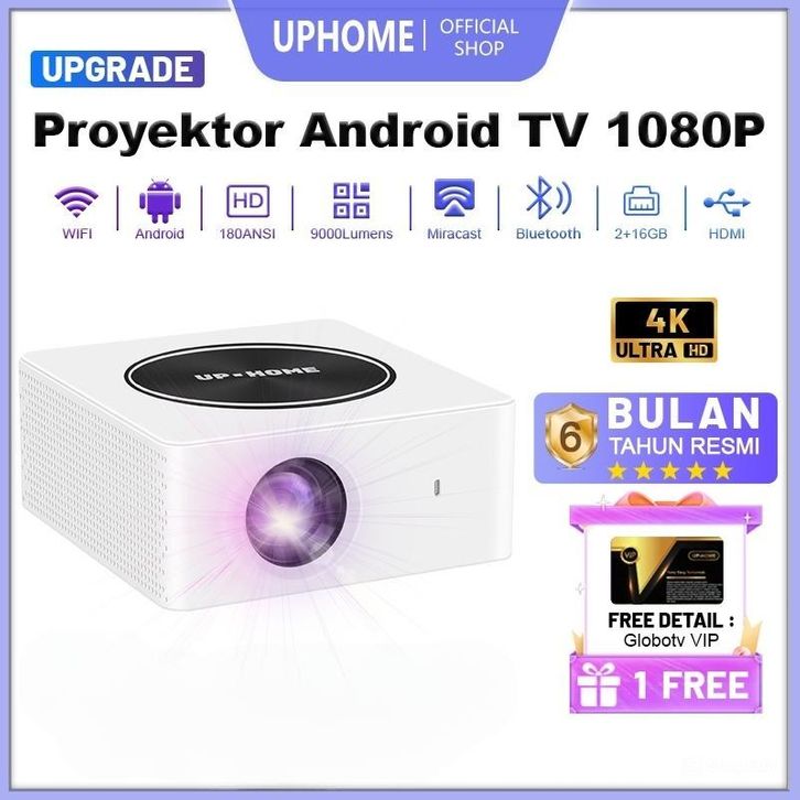 [Star]【NEW UPGRADE】UPHOME Proyektor Android TV 1080P 9000 Lumen Smart Projector Android 13.0 Ram 2G Rom 16Gv - sbr11