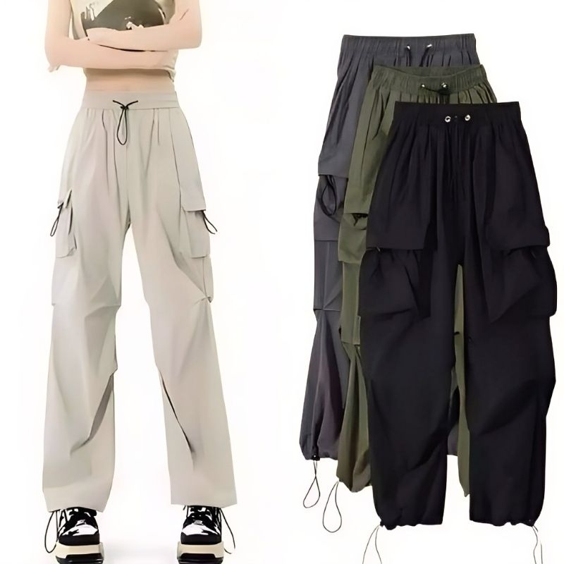Cargo Pants Wanita Highwaist Loose Pants Korean Style Jumbo | Celana Cargo Wanita
