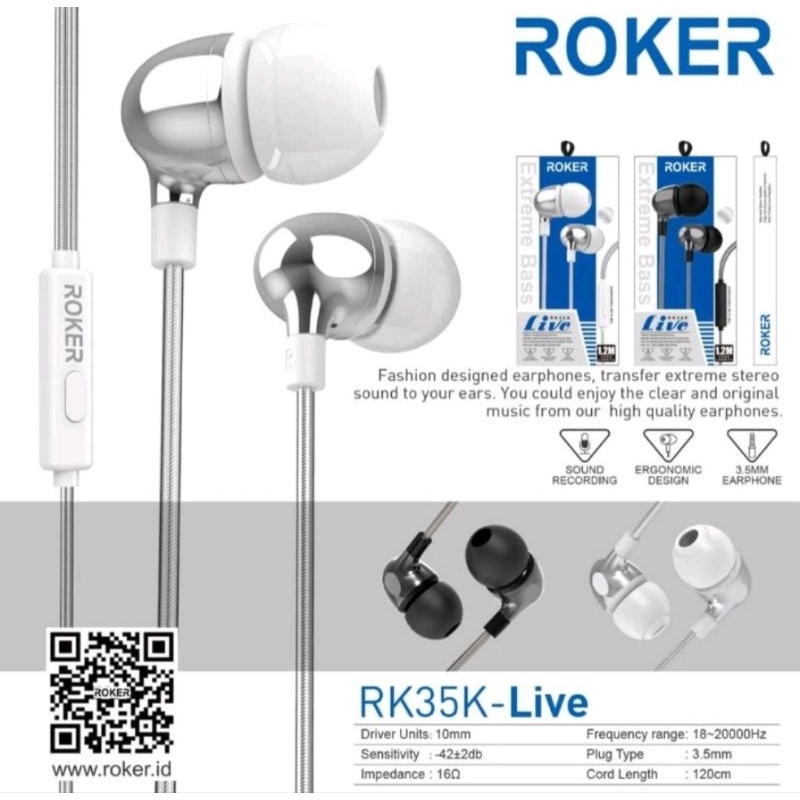 Handsfree Type ROKER EXTRA BASS Headset Roker Original Handset Handsfree Roker Earphone Roker