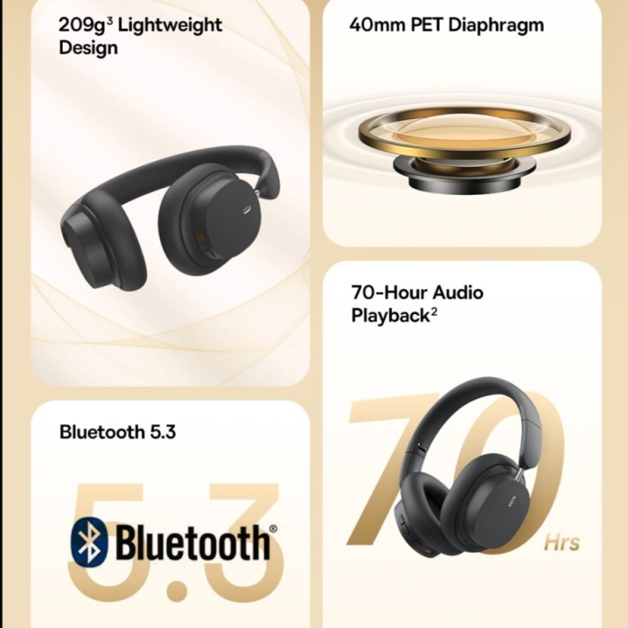 Baseus D05 Bowie Wireless Headphone Bluetooth Wired Bass Headphones