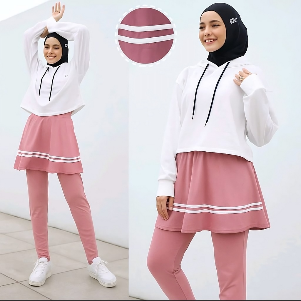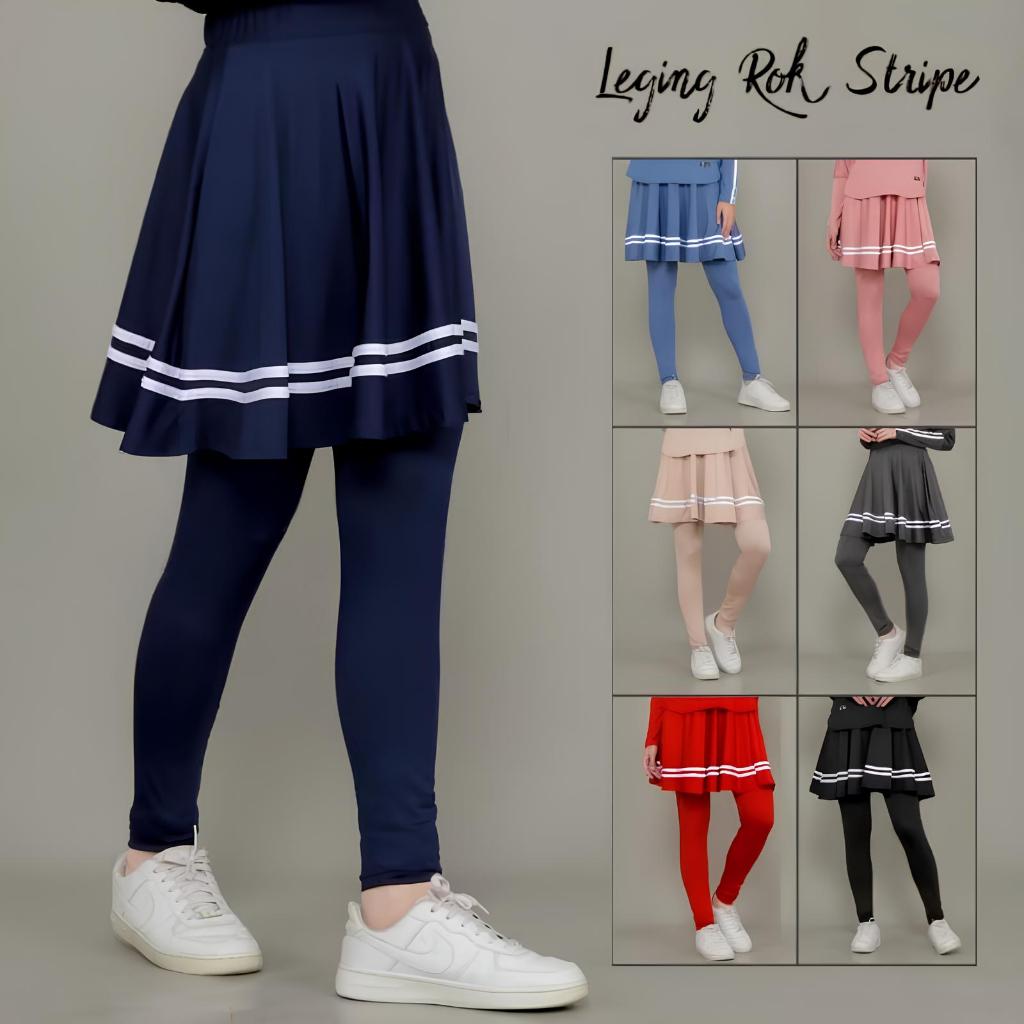 Legging Rok Olahraga Wanita Stylish dan Nyaman Stripe Skirt Pants Sport Senam Yoga Gym Sepeda Tenis