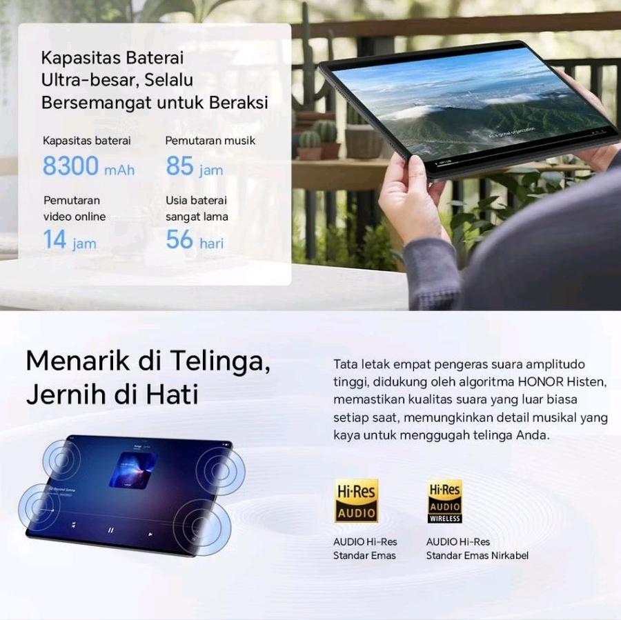 Honor Pad X8A Tablet 4/128GB Garansi Resmi Indonesia Snapdragon 680 | 1200 x 1920 pixels 8300 mAh