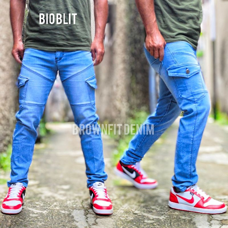 Celana Jean Cargo Slimpit - Cargo Pria Bikers Garis