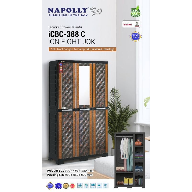 lemari pakaian plastik 3pintu gantung hambalan CABRO 388.2 CK ICBC 388