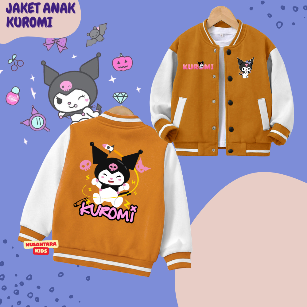 JAKET VARSITY BASEBALL ANAK PEREMPUAN CEWEK GAMBAR HELLO KITTY DAN KUROMI UNTUK ANAK USIA 2-12 TAHUN