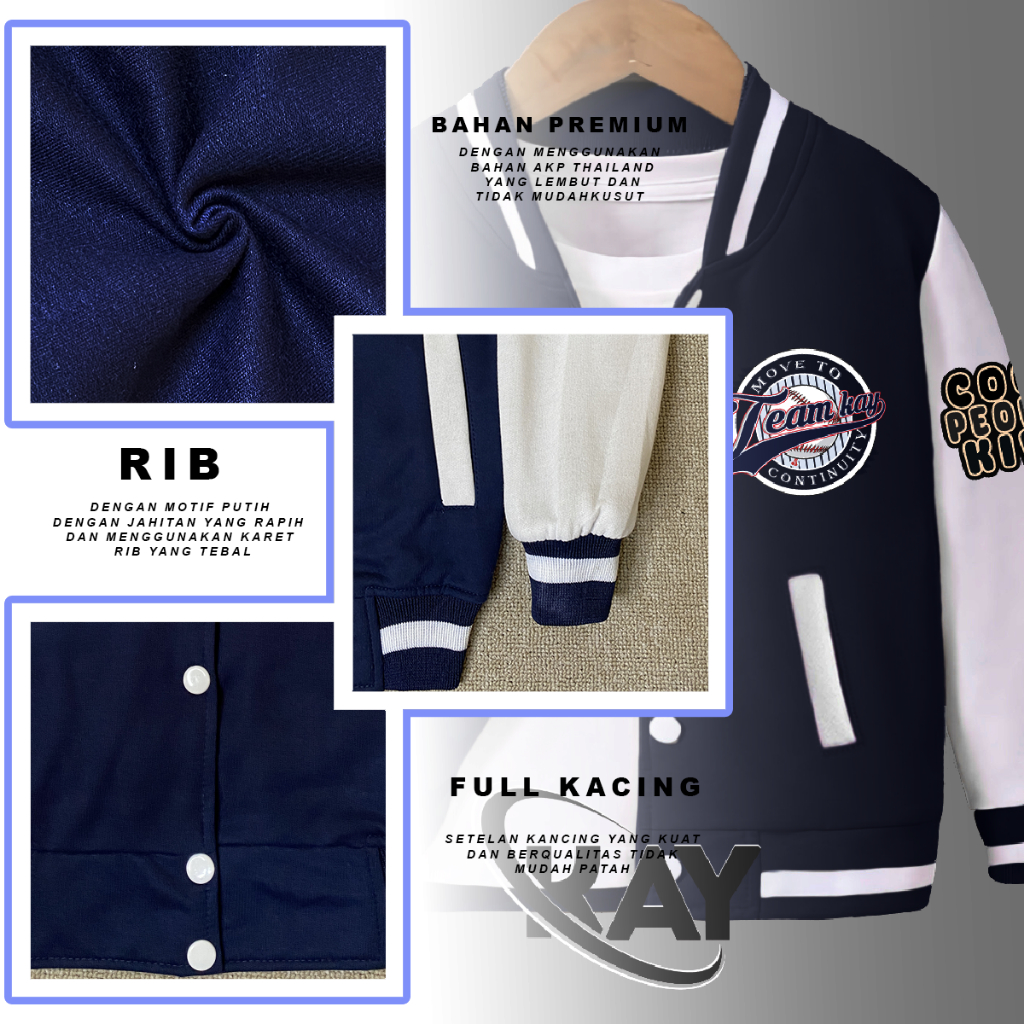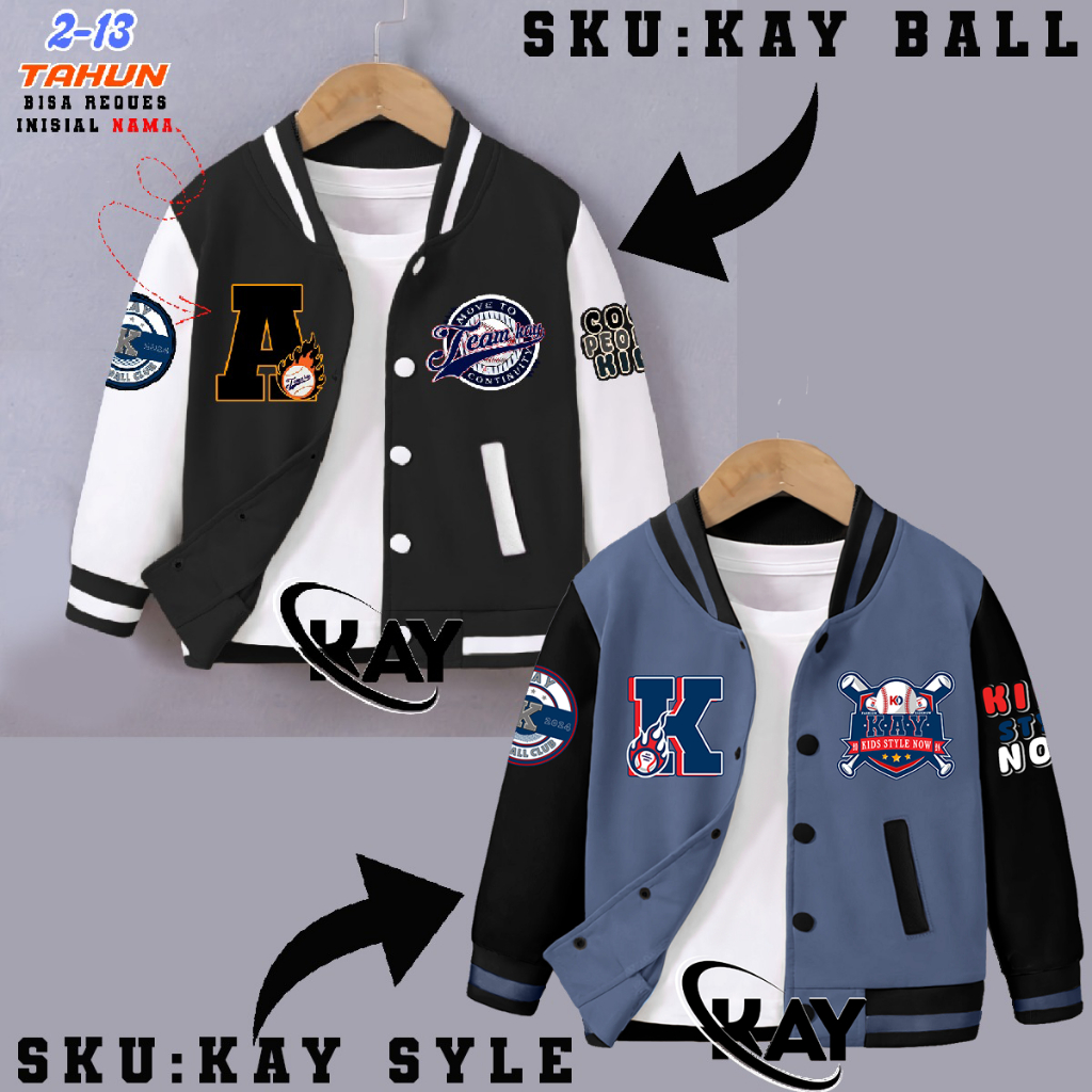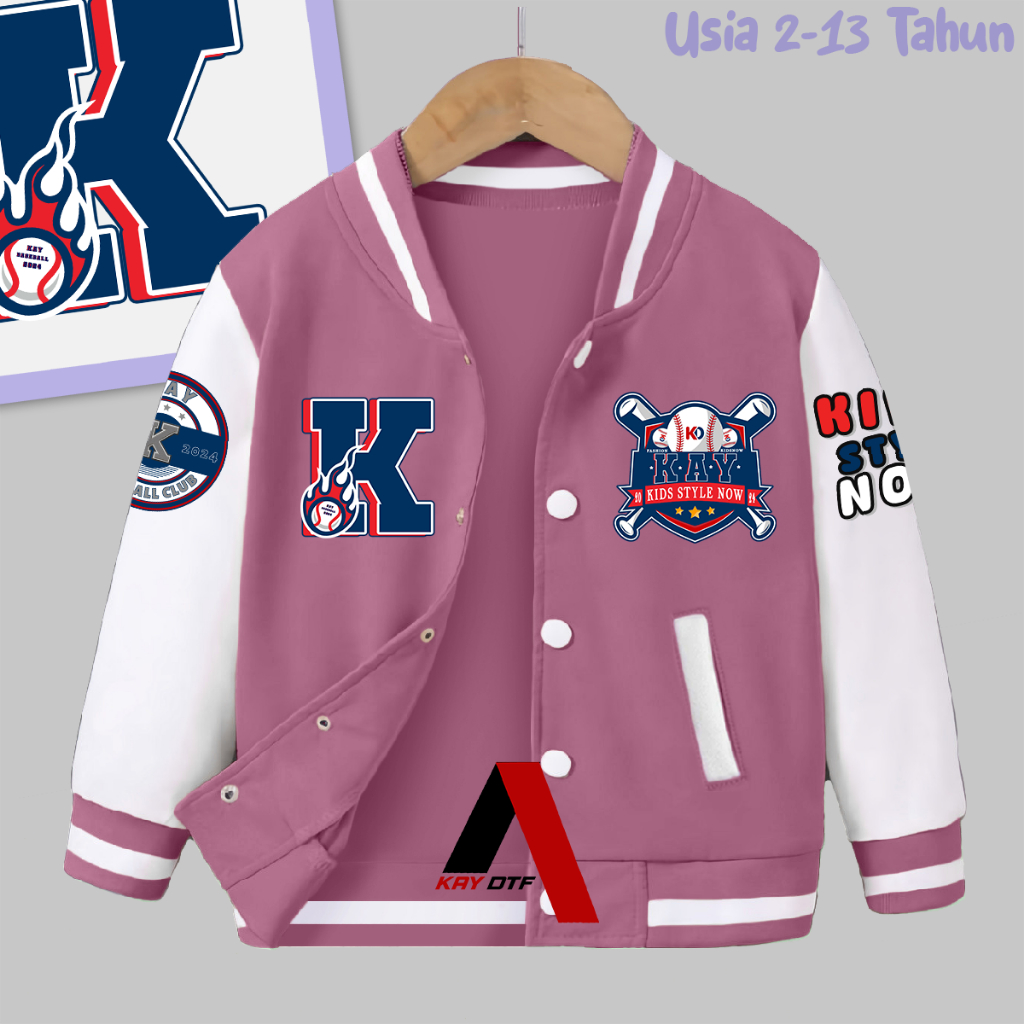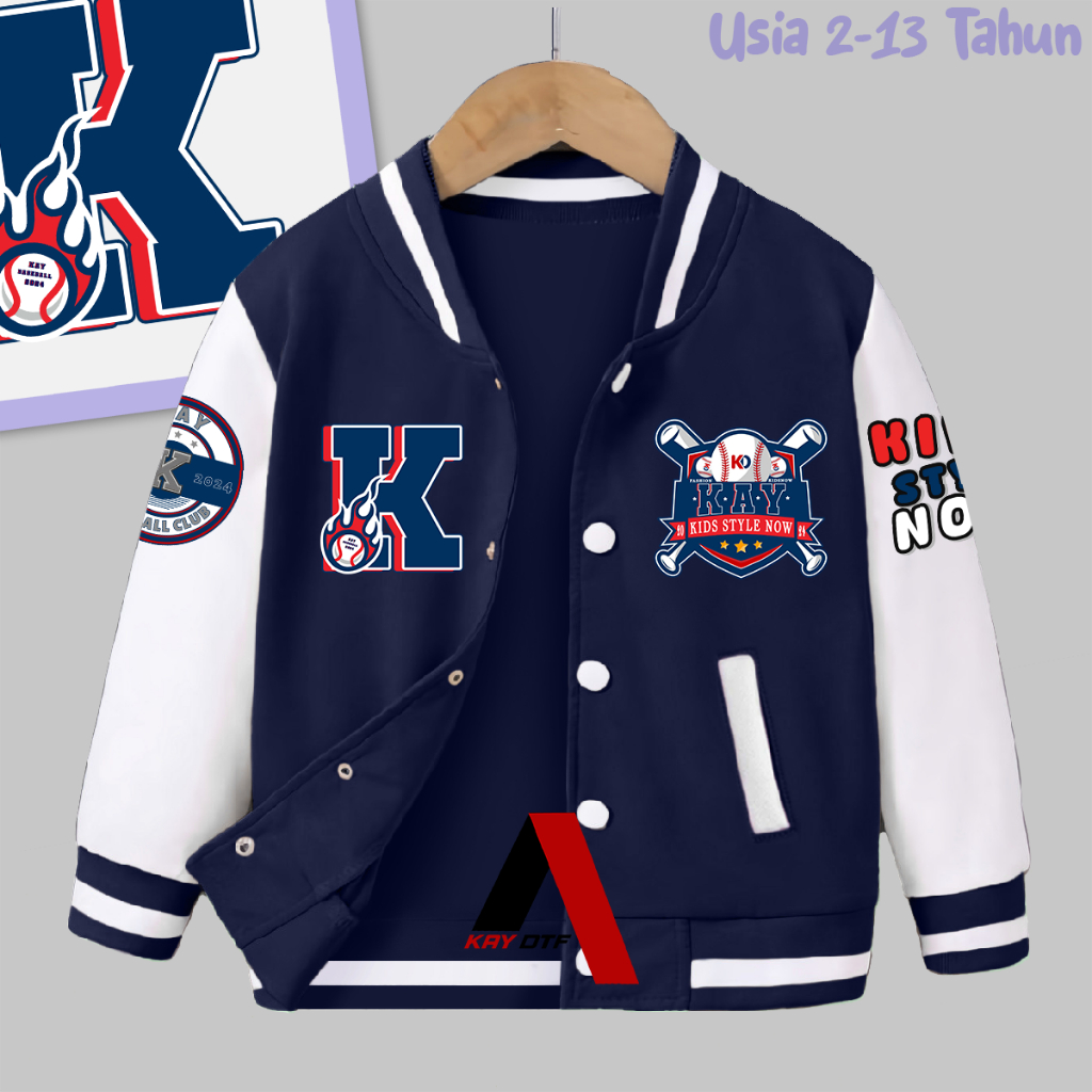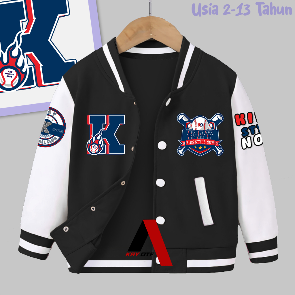 KAY Jaket Baseball Varsity Anak Inisial A-Z Laki Laki Perempuan Umur 3 4 5 6 7 8 9 10 11 12 13 Tahun