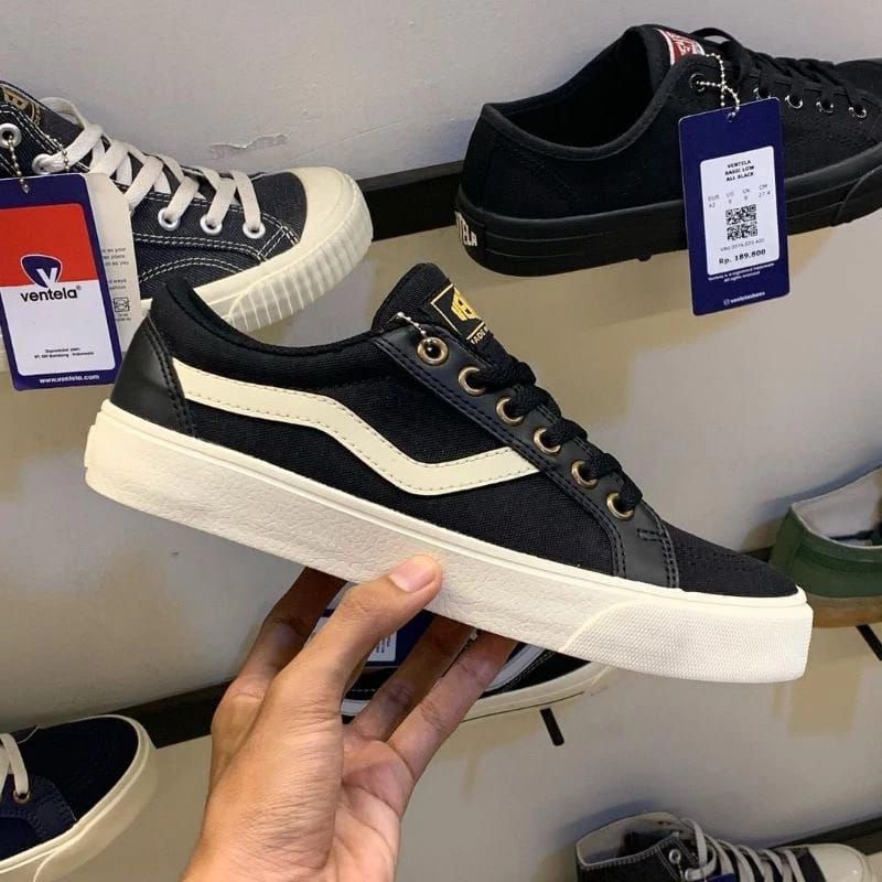 Discount Sepatu Ventela Republik Low Black Sneaker Canvas Casual Pria Shoes