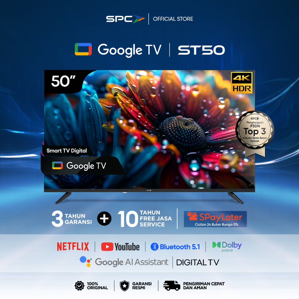 SPC Smart TV 50 Inch - ST50 Google TV 4K UHD | Dolby Audio | Google Assistant | Digital TV | Frameless | Ultra Slim