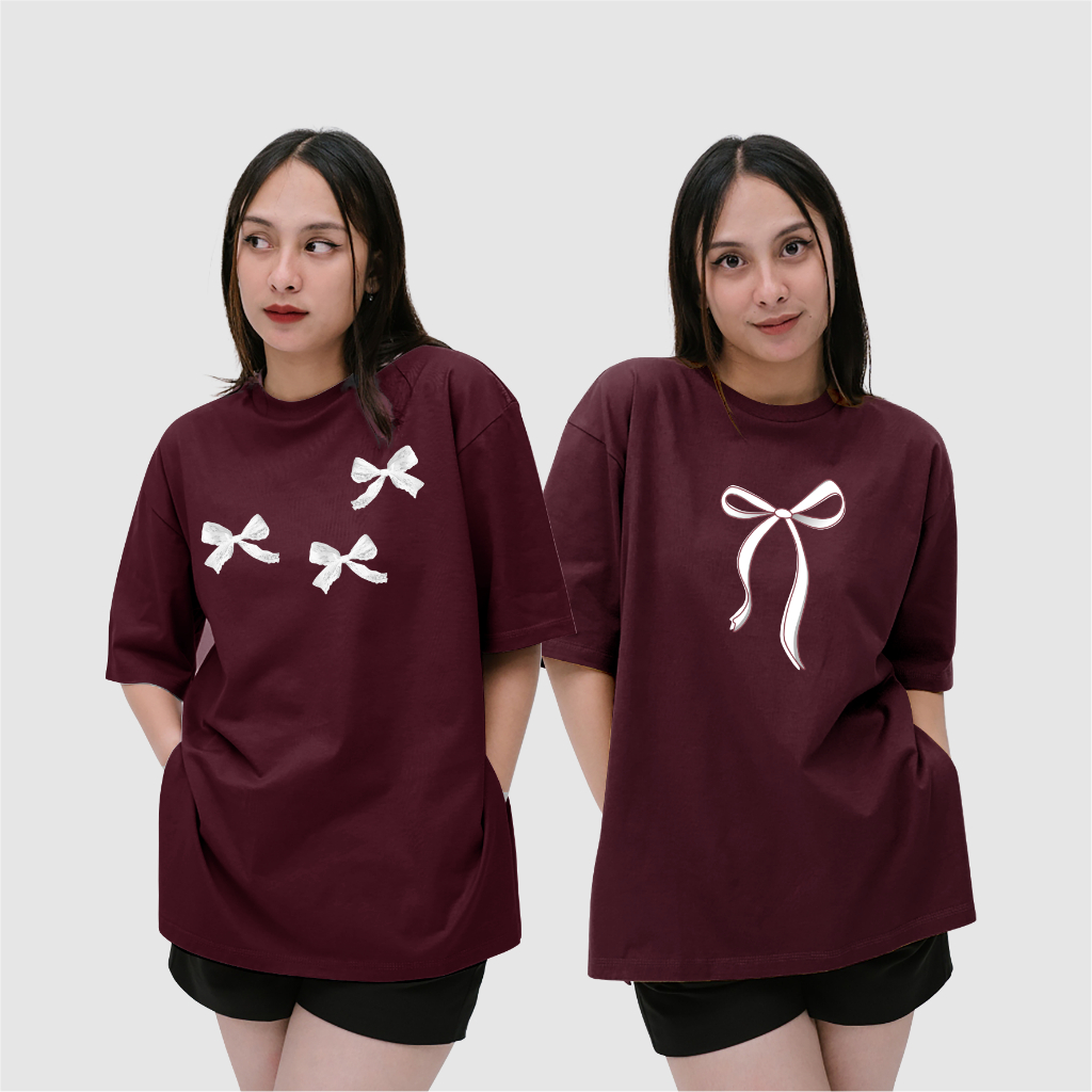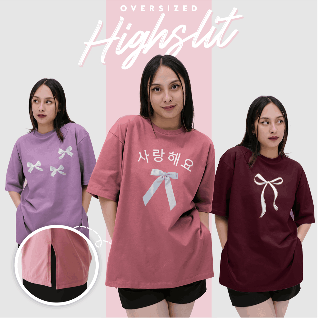Kaos Oversize Highslit Wanita Bow Ribbon Pita | Atasan Wanita Belah Samping Korean Style