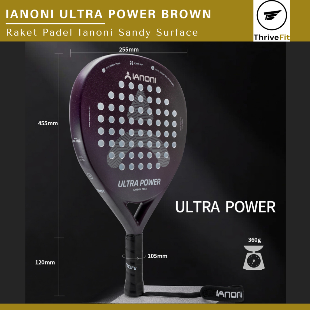 [Mall] IANONI ULTRA POWER BROWN PADEL RACKET / RAKET PADEL FULL CARBON SANDY SURFACE - COKLAT