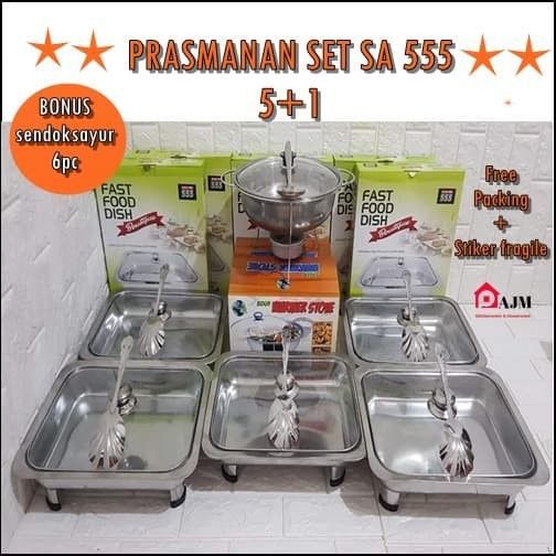 Set Prasmanan Stainles Prasmanan Set Tutup Kaca 5+1 Stainles Steel Wadah Saji Set