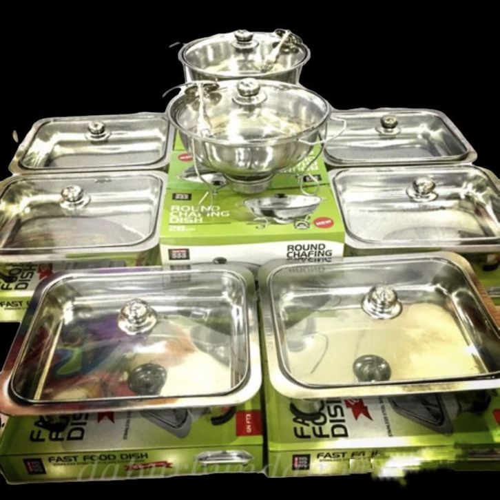 Set Prasmanan Stainles Prasmanan Set Murah Stainless Tutup Full Kaca Isi 6 Kotak + 2 Bulat