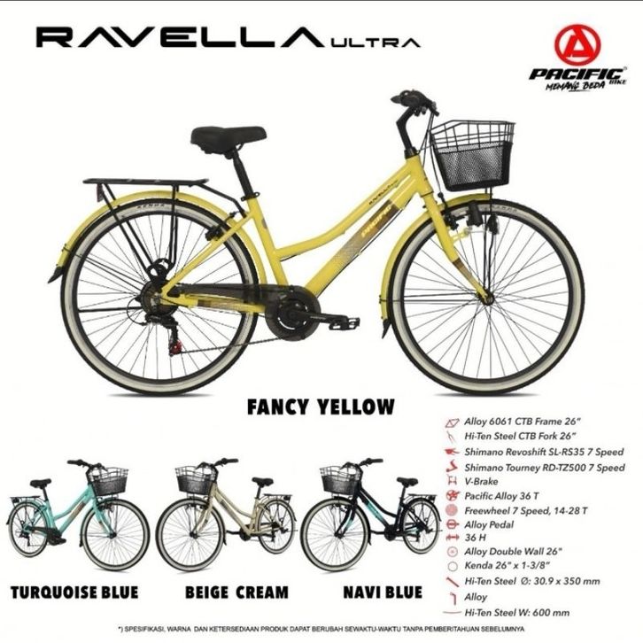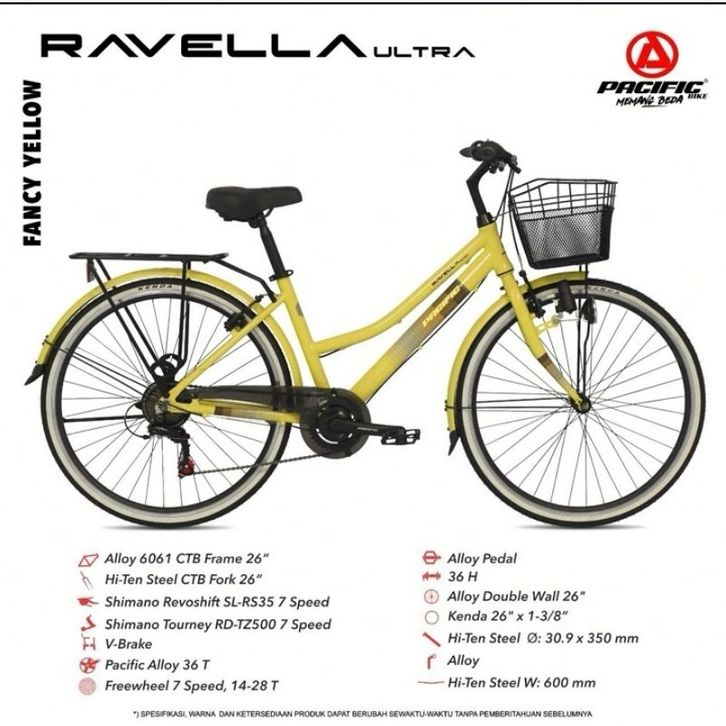 Sepeda CTB 26 Pacific Ravella Ultra Alloy 7 Speed Shimano Keranjang / Sepeda City Bike Perempuan