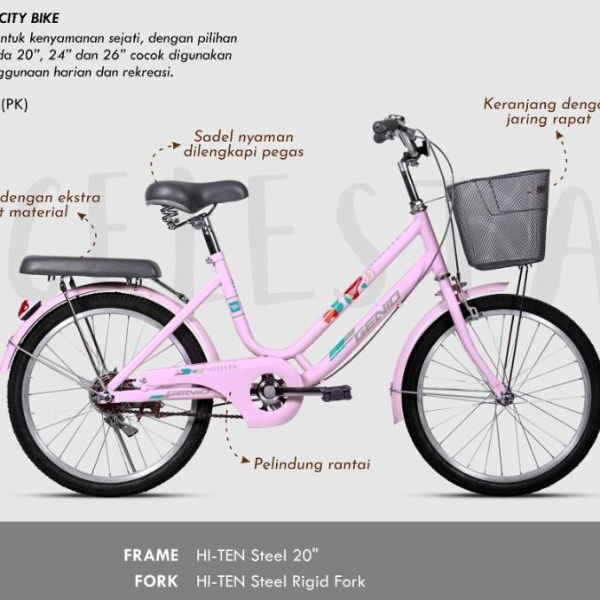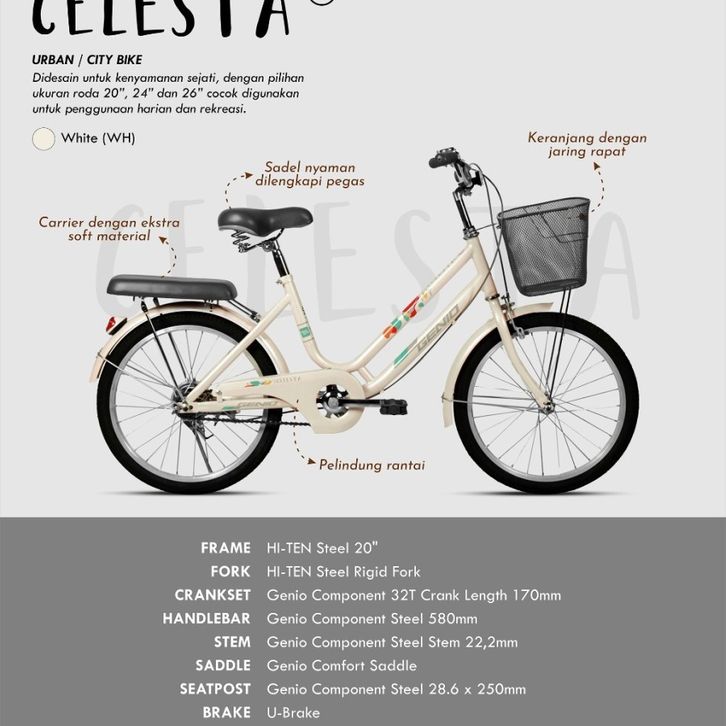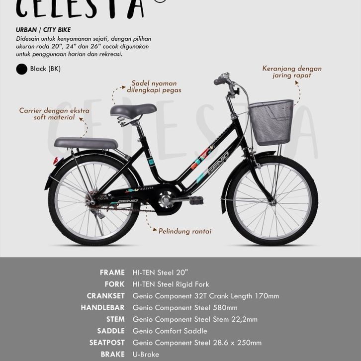 Sepeda Mini 2 Inch Genio Anak Cewek Usia 7-14 Tahun Celesta United Bike Keranjang Besi Dan Boncengan