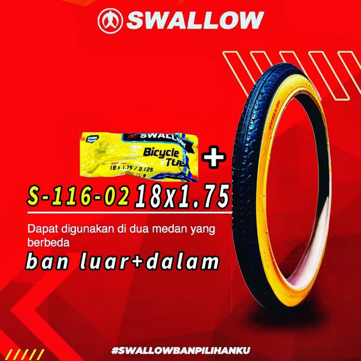 Ban luar dalam sepeda 1x1.75 swallow cocok untuk sepeda1 in
