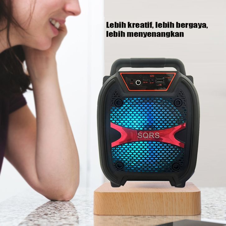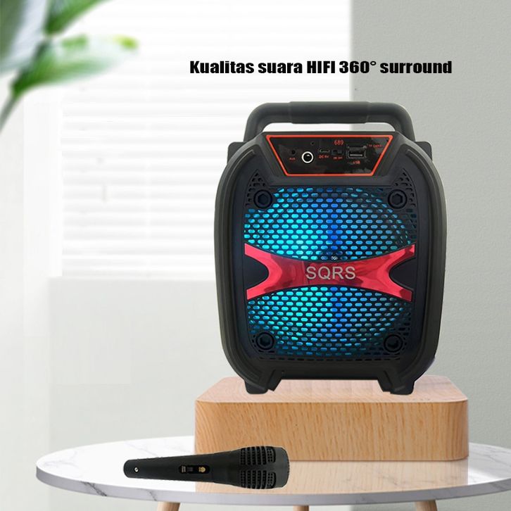 Speaker Mikrofon Bluetooth 6.5 Inch Karaoke Subwoofer Speaker Dioda Pemancar Cahaya Led