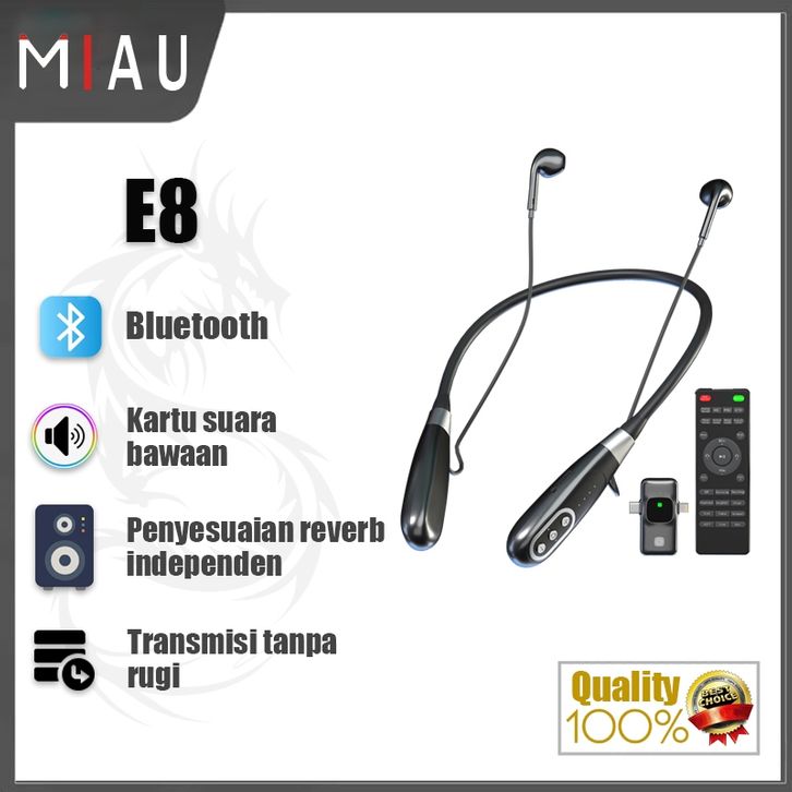 Mikrofon Bluetooth E8 2 In 1, Headphone Neckband, Pengeditan Audio Langsung, Suara Surround