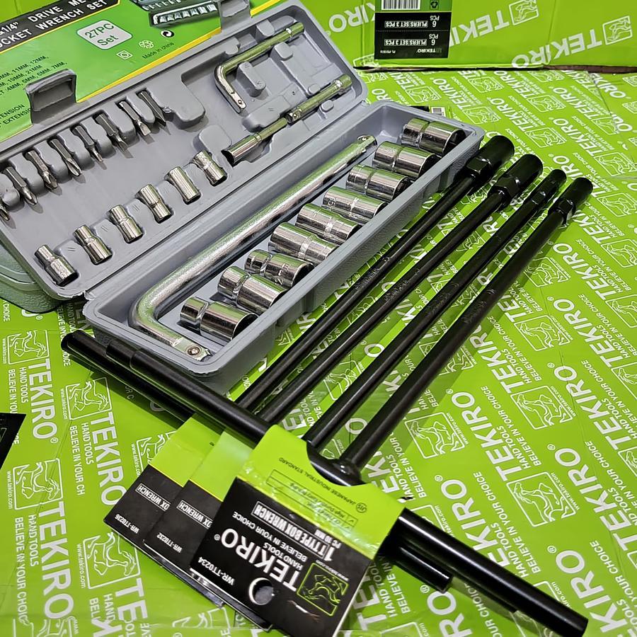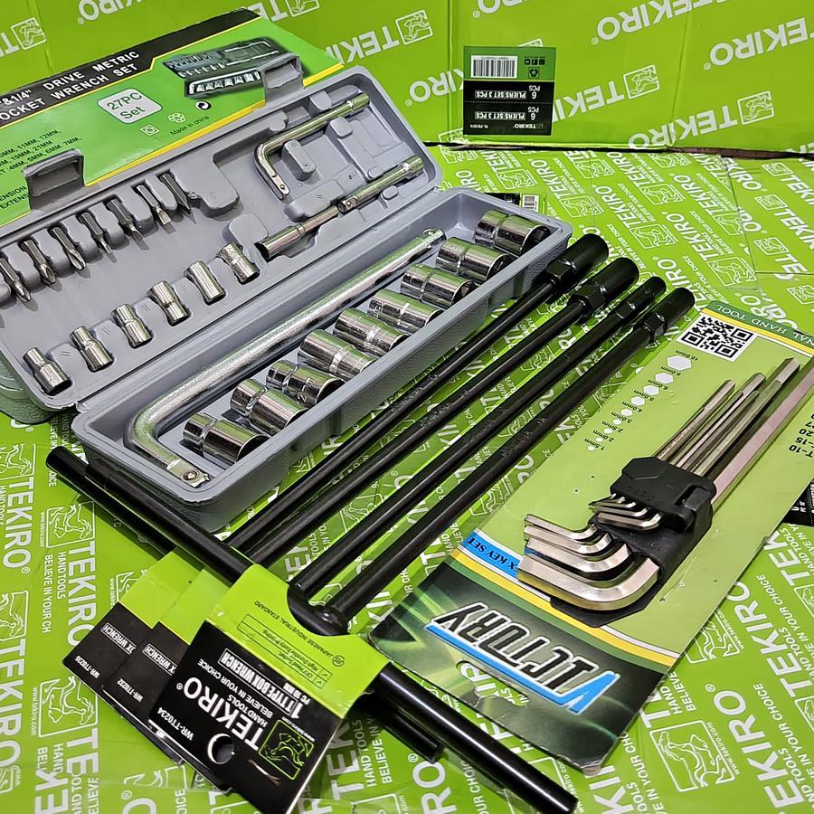 TEKIRO Kunci T 4pcs 8-10-12-14mm + Kunci Sok Shock 27pcs Victory + Kunci L Set 9pcs