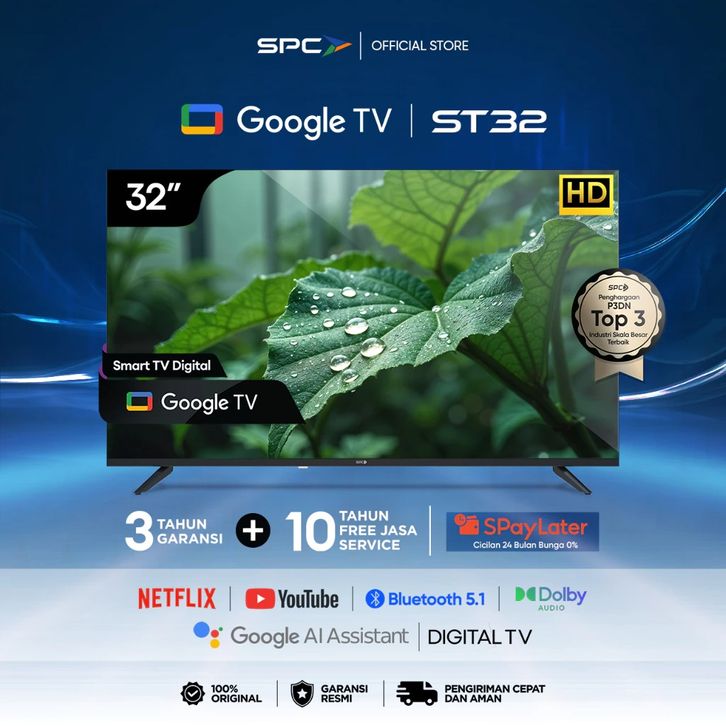 SPC Smart TV 32 Inch - ST32 Google TV - HD | Low Watt 56W | Dolby Audio | Google Assistant | Digital TV | Frameless | Ul