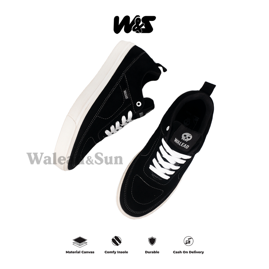 WALEAD & SUN - Sepatu Sneakers Casual Pria Ukuran 36 - 44 Sepatu Lokal Brand Sekolah Horizon BW V1