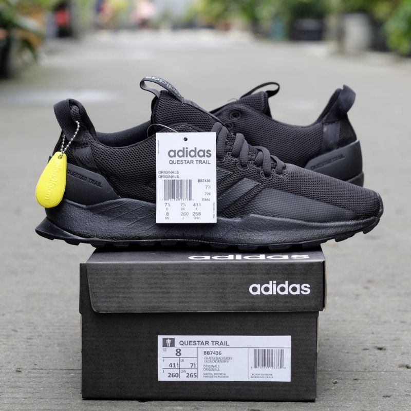 Sepatu Pria Wanita Best Seller Adidas Questar Trail Full Black Made in Indonesia [BNWB] | Sepatu Sekolah | Sepatu Trekking | Termurah