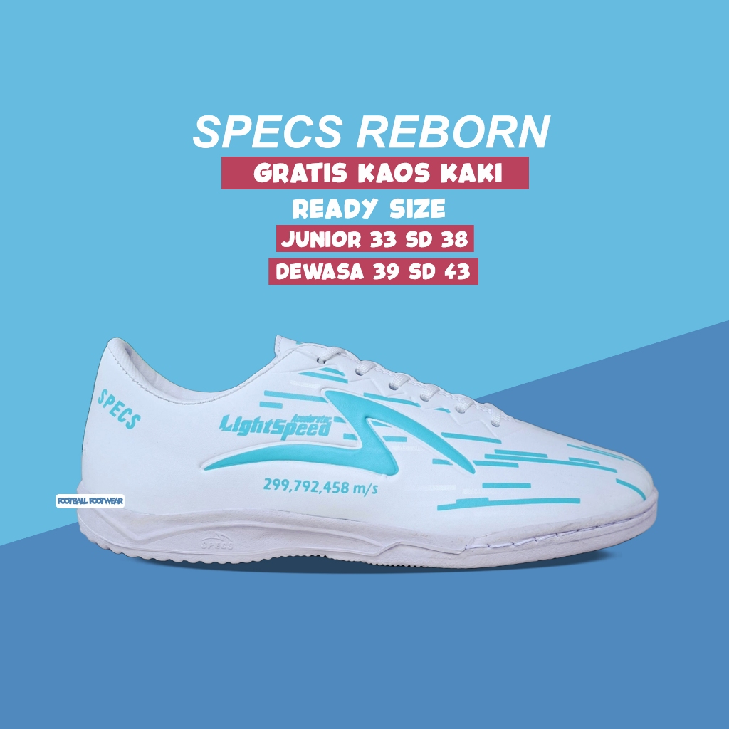 [Mall] TERBARU SEPATU FUTSAL ANAK DEWASA SPECS LIGHT SPEED REBORN PREMIUM - PUTIH HIJAU SKY