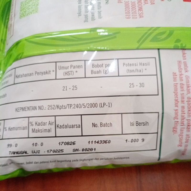 Benih 1 Kg Kangkung Bangkok LP F1 Cap Panah Merah
