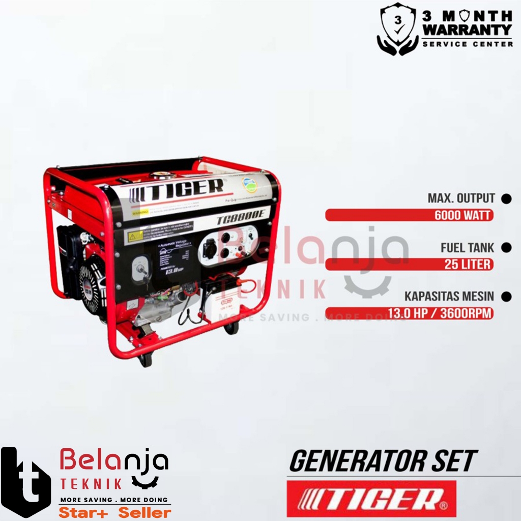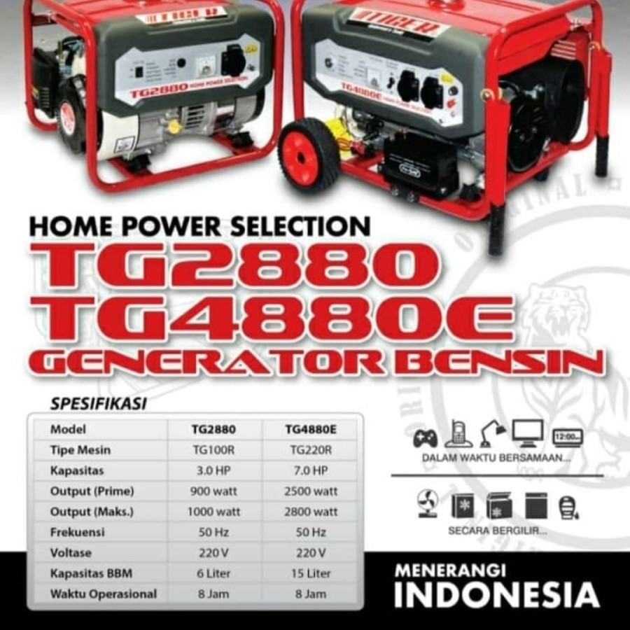 Tiger Mesin Generator Set TG 8800 E 55KW Genset TG8800E 5500 Watt Bensin
