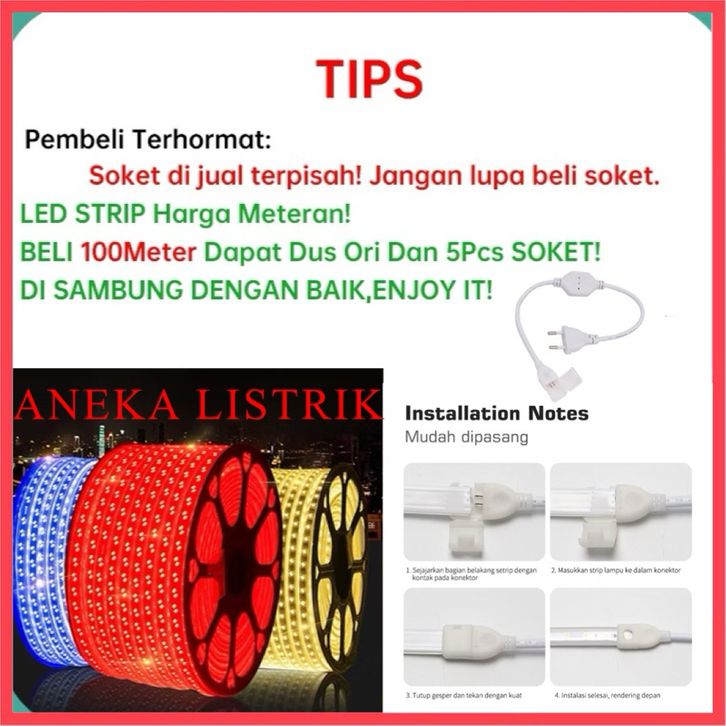 LAMPU LED STRIP SELANG 5050 SMD AC 220V METERAN (1M-100M) OUTDOOR AND INDOOR LAMPU PLAFON LAMPU HIAS