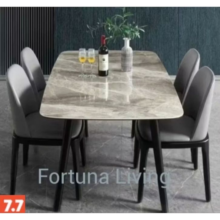 PROMO 7.7 Fortuna Living Meja Makan Set Marmer Premium Retro 4 kursi atau 6 kursi