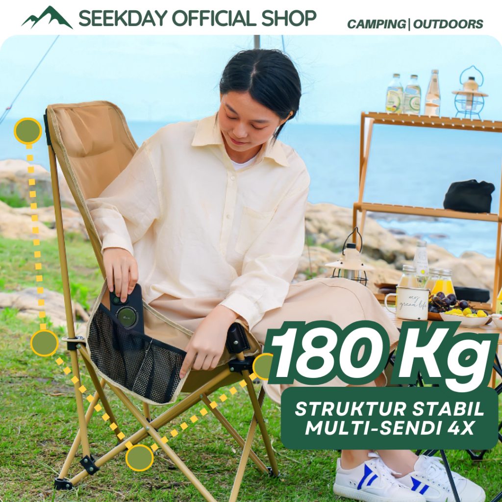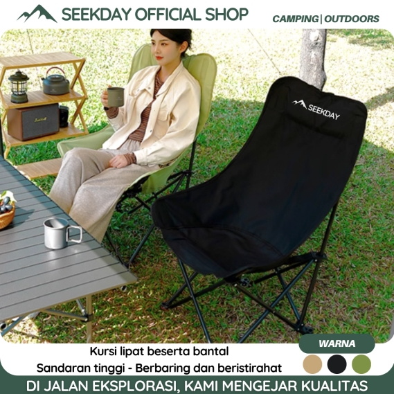 Seekday Kursi Lipat Sandaran Outdoor Ergonomics Tinggi Dengan Sandaran Kepala Busa Kursi Camping Kuat/Lebar/Tebal Beban