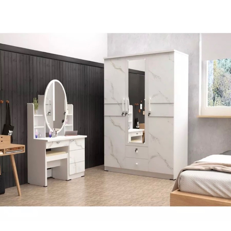 PAKET LEMARI + MEJA RIAS PAKET HEMAT LEMAEI BAJU 3 PINTU MEJA RIAS MR 09 + LP 35 ROMARO