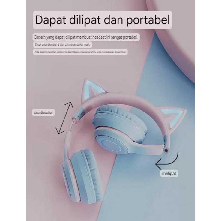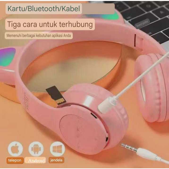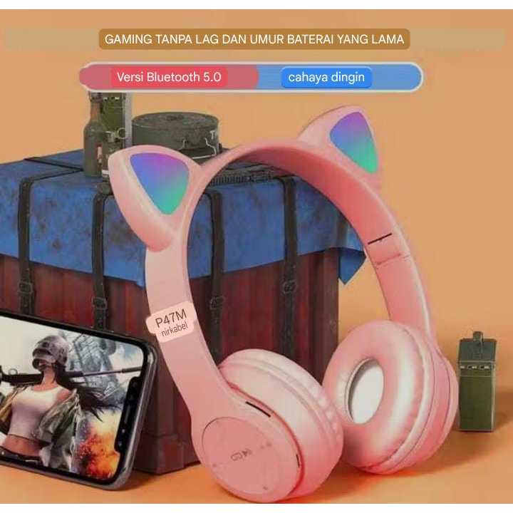 Headphone Bluetooth Wireless P47M Cat Ear V5.0 Hifi Sound Quality Lampu LED