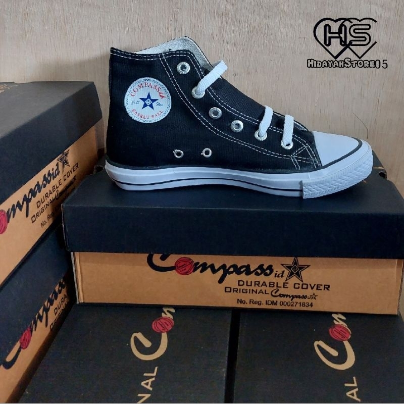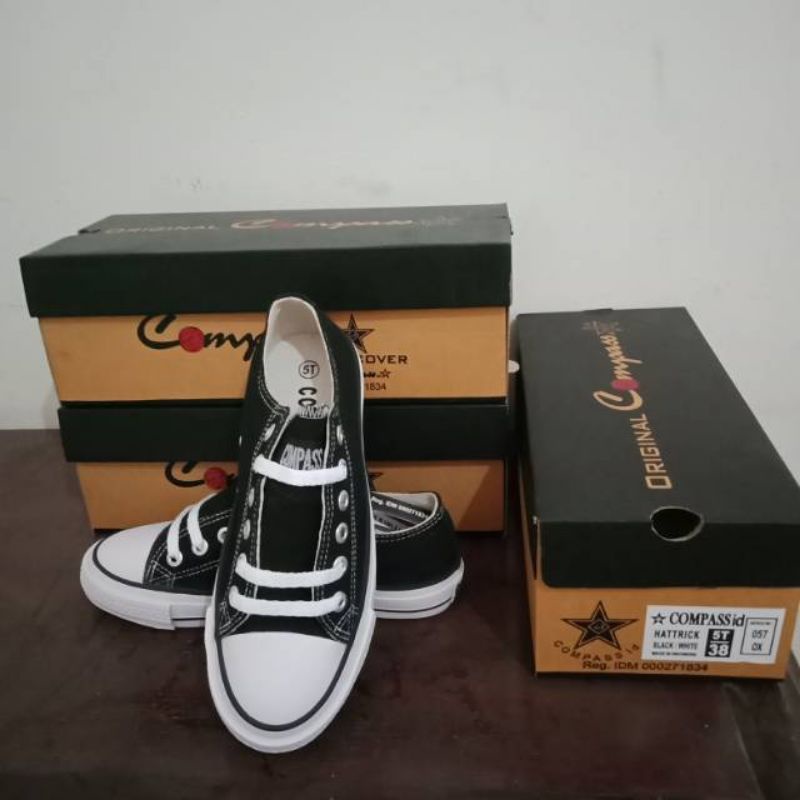 Sepatu Compass id Original 056/Alecio 057/Hattrick Black White Size 33-45 Sneakers Anak Sekolah SD SMP SMA