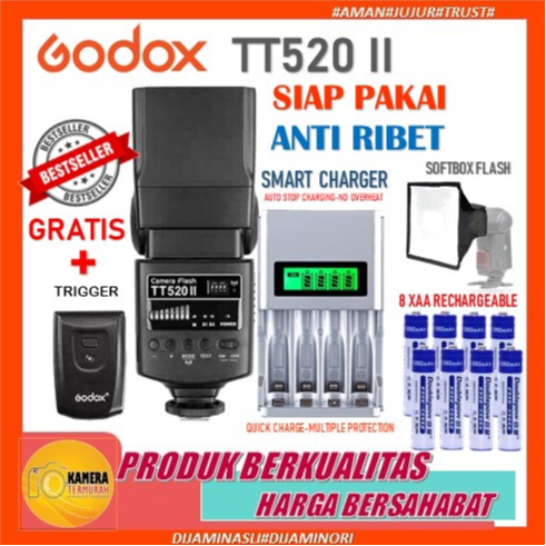 Paket Lampu Flash Eksternal Godox TT520II TT 520 II Kamera Canon Fujifilm Olympus Lumix Pentax Sony Nikon