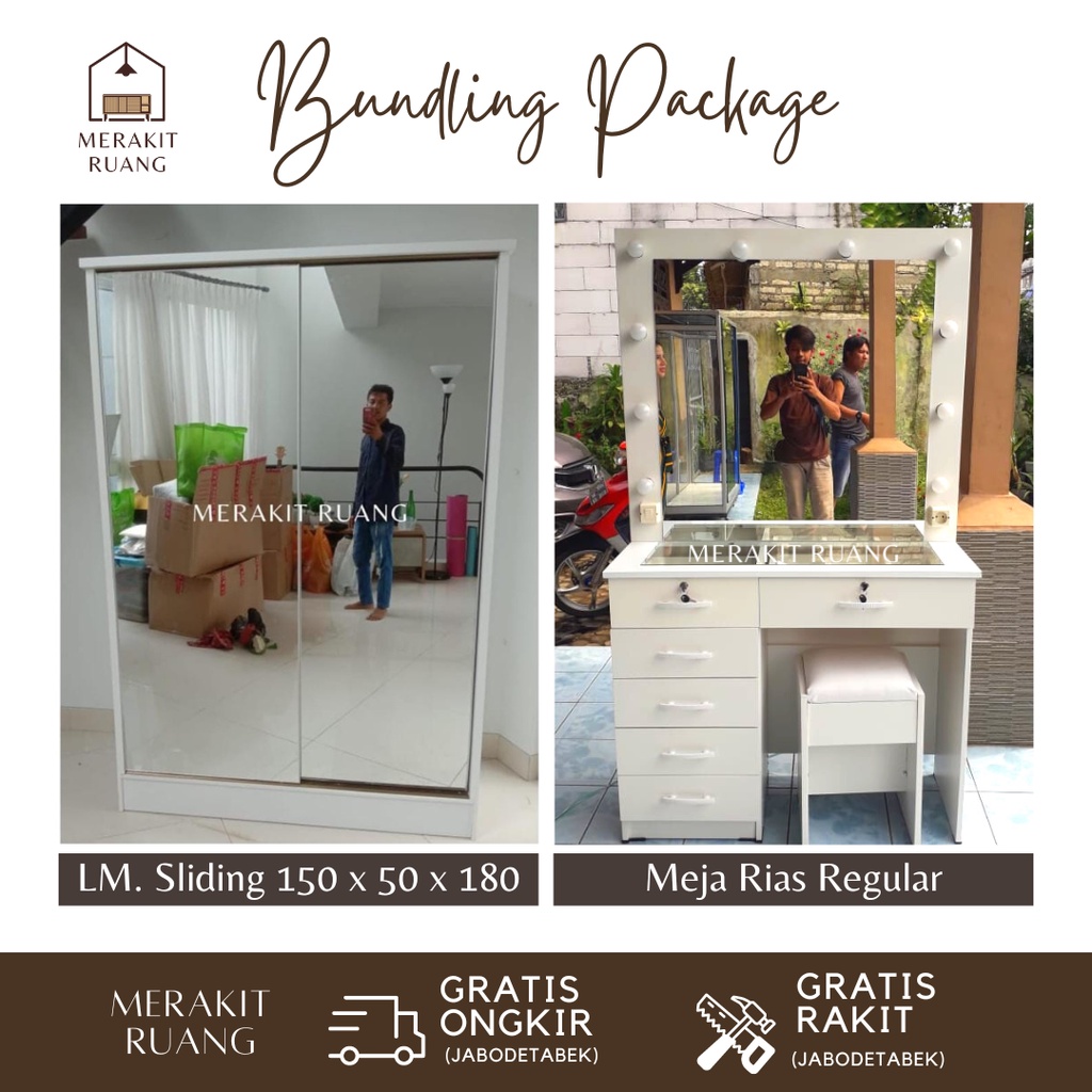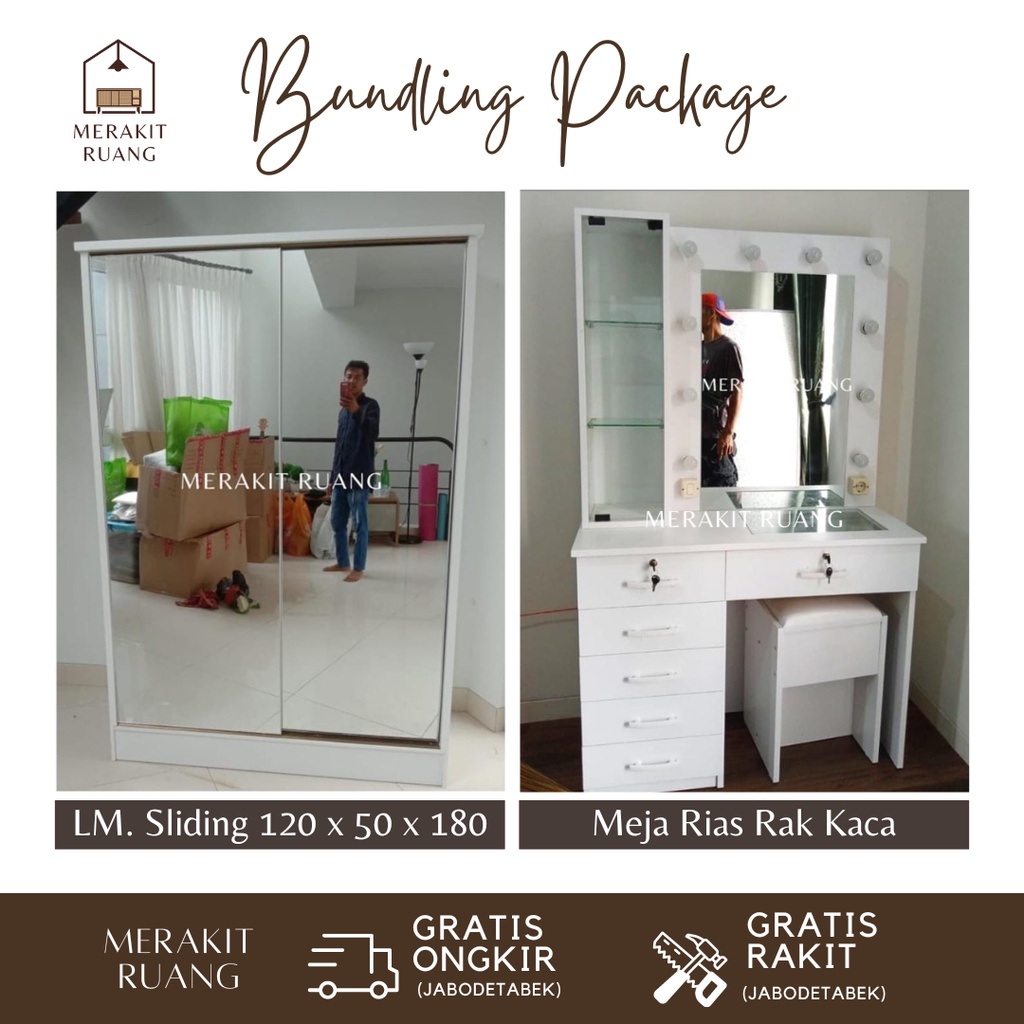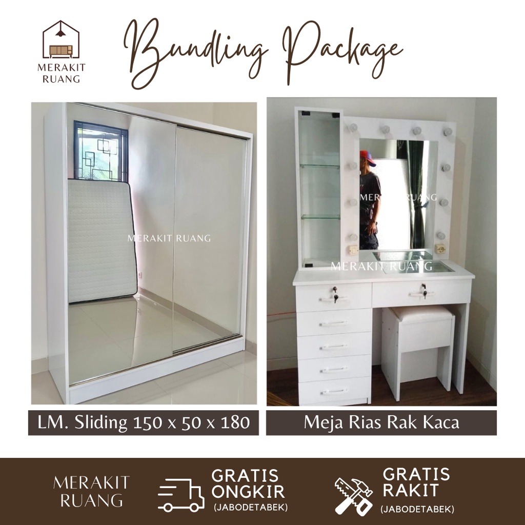 (PAKET HEMAT SLIDING) Paket Lemari Sliding Dan Meja Rias Scandinavian Murah Premium