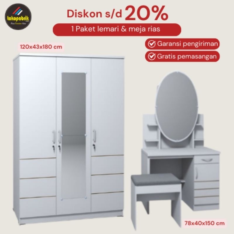 Paket murah 1 set lemari baju dan meja rias lemari pakaian olympic 3 pintu + meja rias sleding G-star
