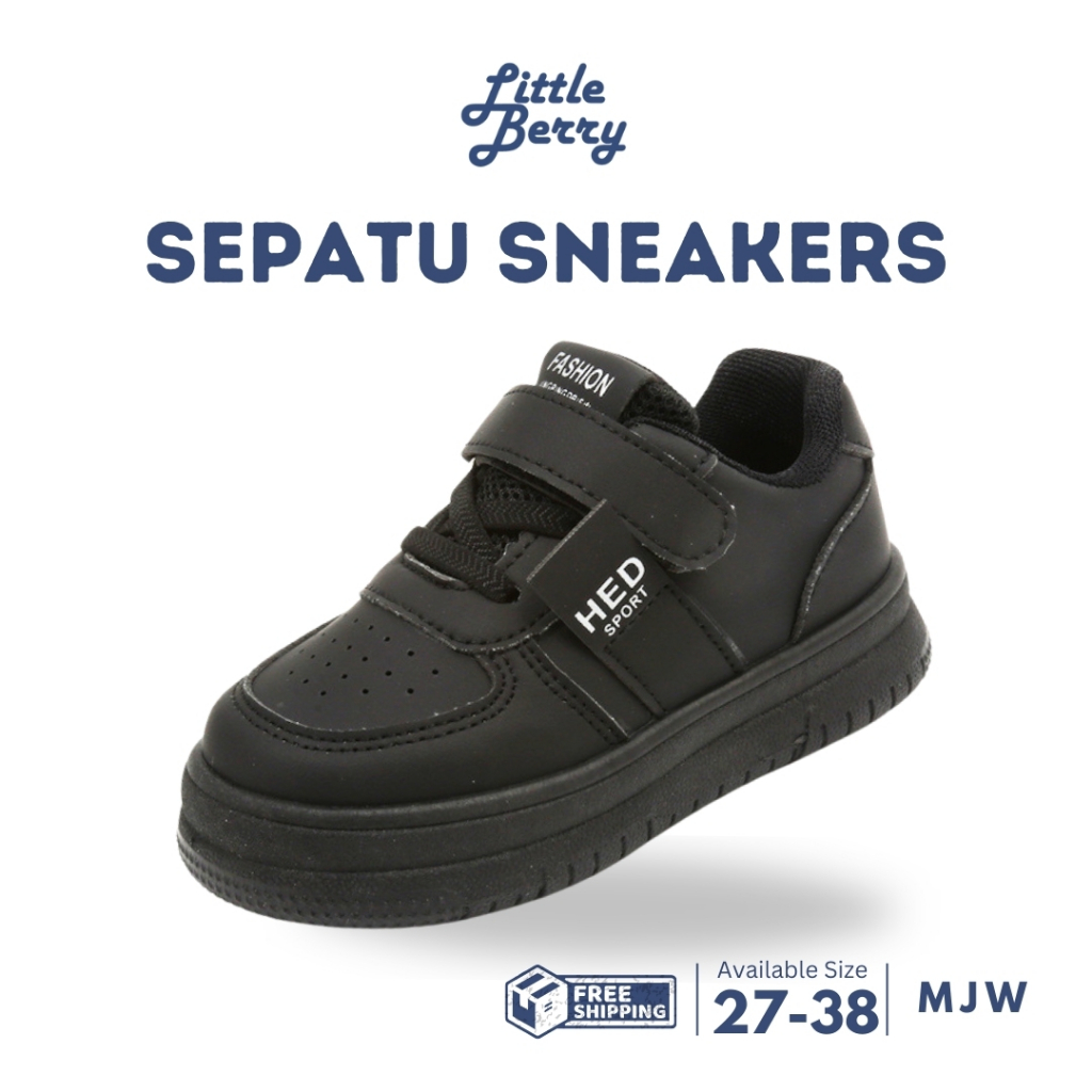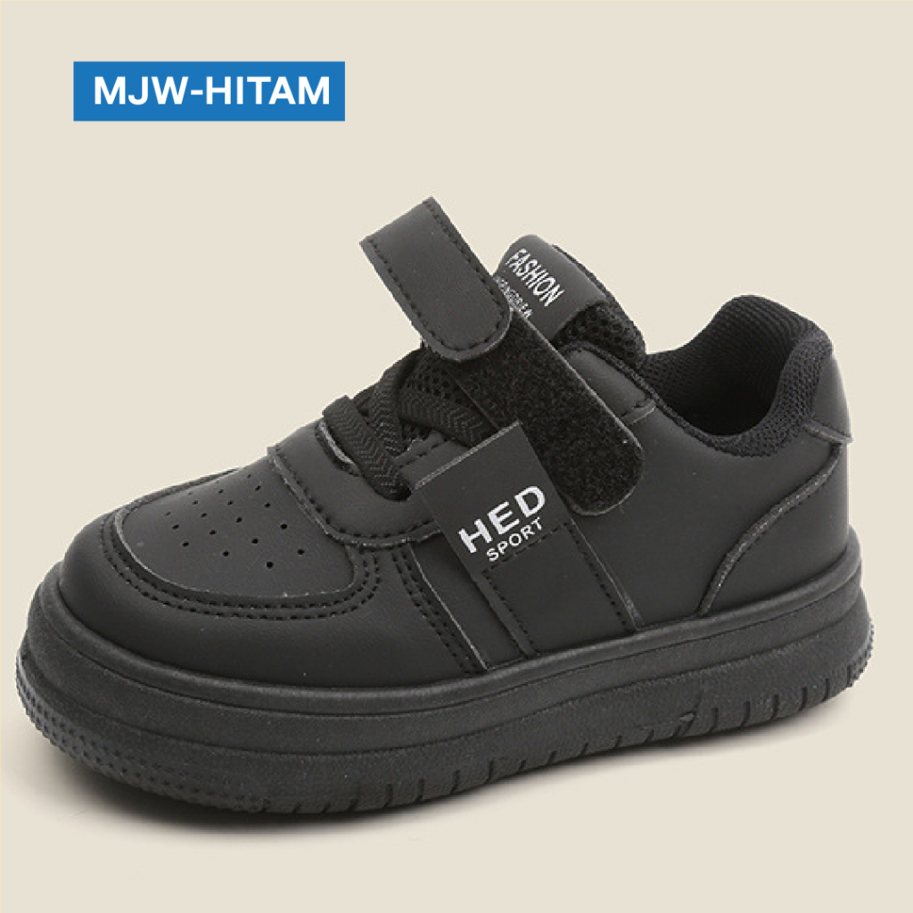 LITBERRY - Sepatu Sneaker Sekolah Casual Anak Laki Laki Perempuan Hitam Usia 2 - 13 Tahun Type MJW