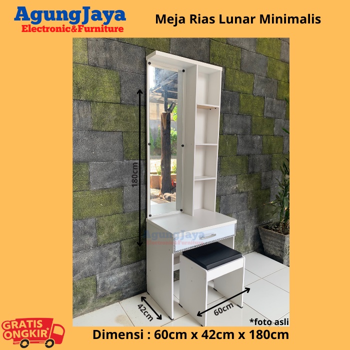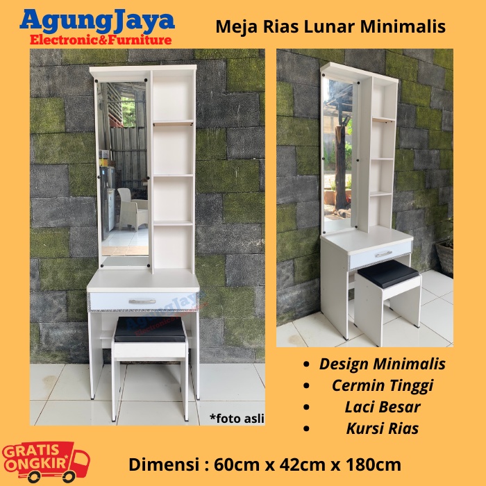 LEMARI RIAS LUNAR MINIMALIS WHITE PUTIH CERMIN PANJANG (GRATIS ONGKIR CILEGON)