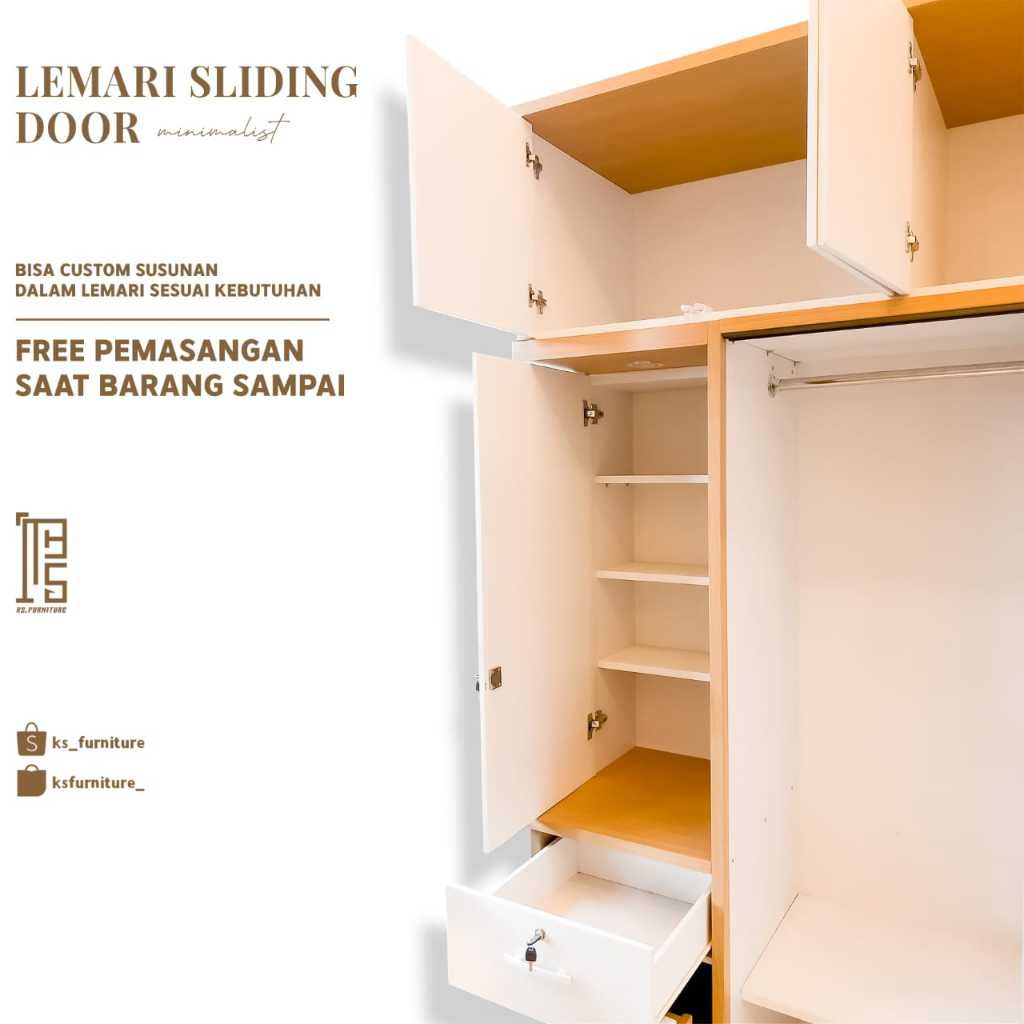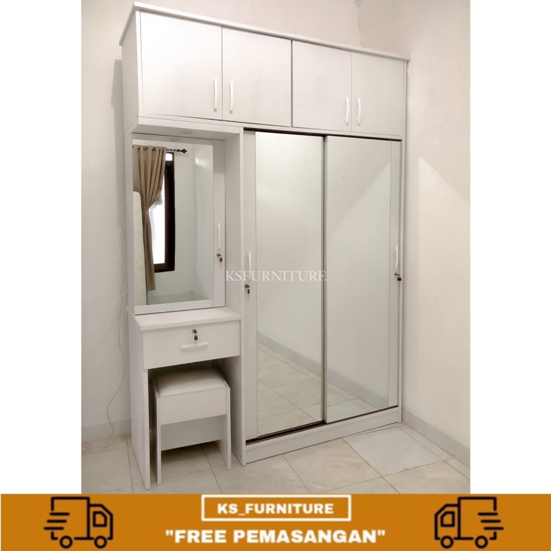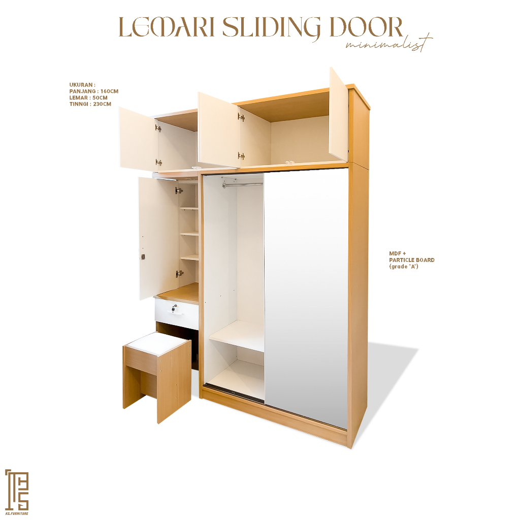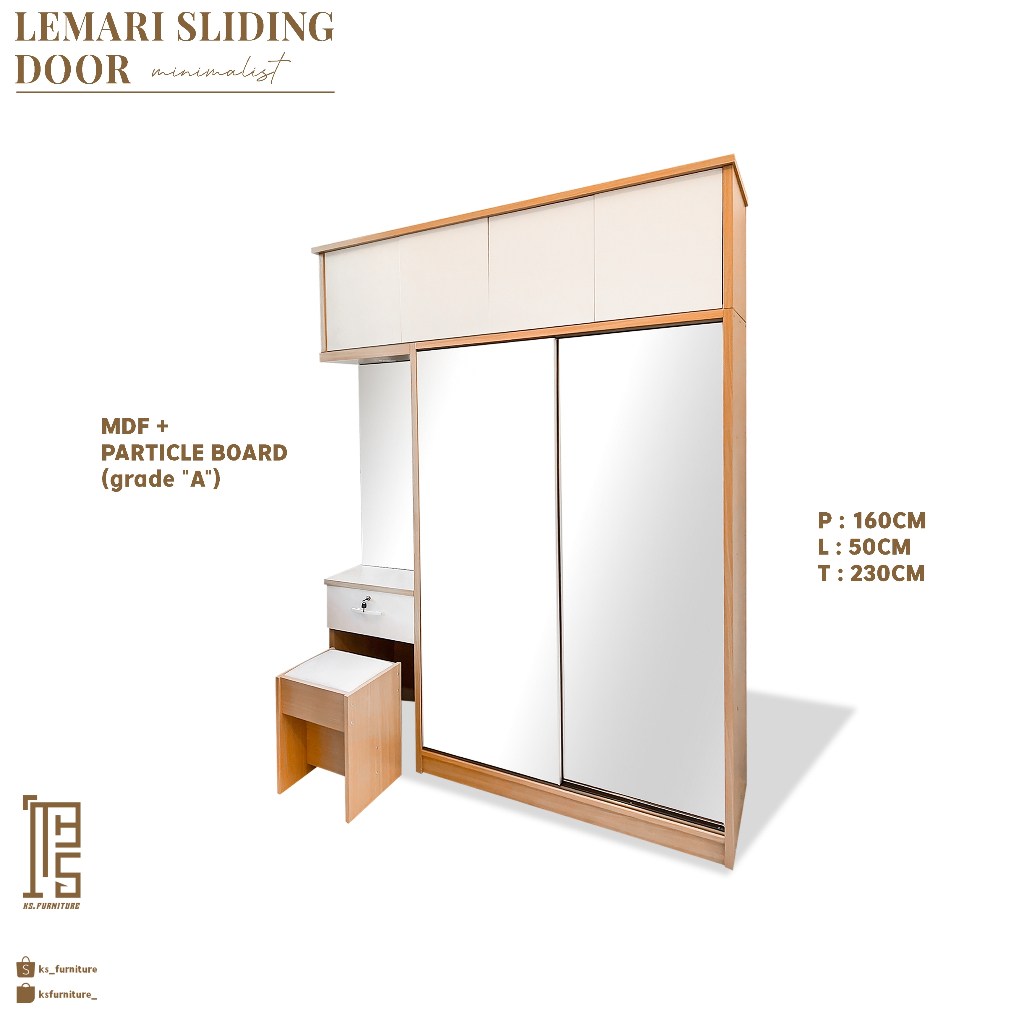 LEMARI SLIDING MINIMALIS ADA MEJA RIAS SUPER CANTIK