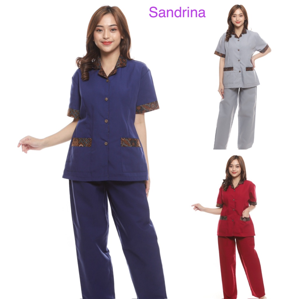 [Sandrina] Baju seragam suster (BATIK)/ Baju baby sitter/ Baju nanny ( Celana panjang )