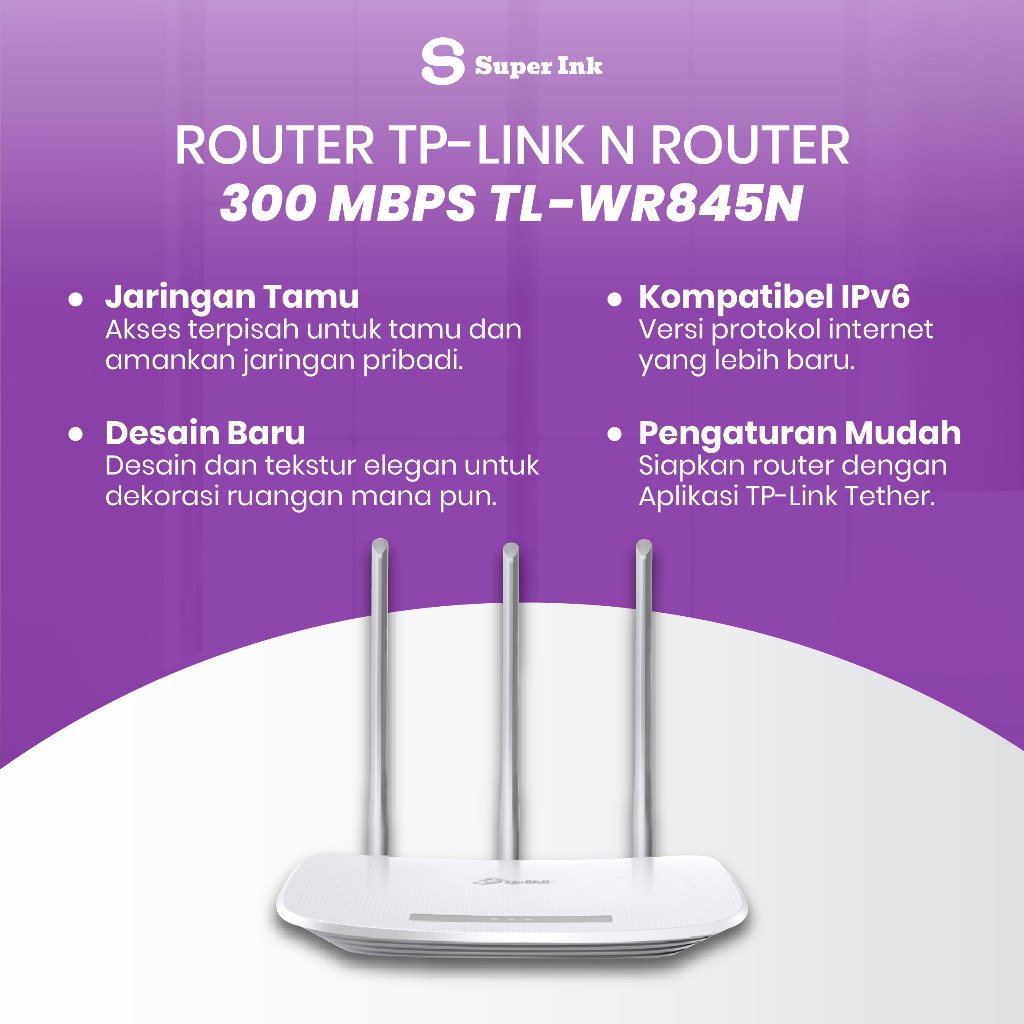 TP-Link TL-WR845N – Modem + Router WiFi 300Mbps300Mbps Wireless N Router Cocok untuk Rumah/Kantor