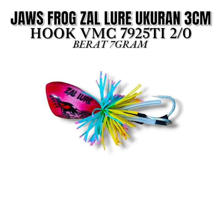 JAWS FROG ZAL LURE UKURAN 3CM. HOOK VMC 7925TI 2/0. BERAT 79ram. UMPAN CASTING GABUS DAN TOMAN