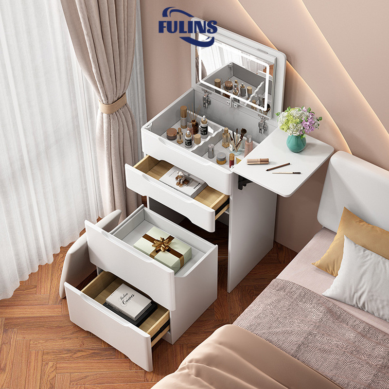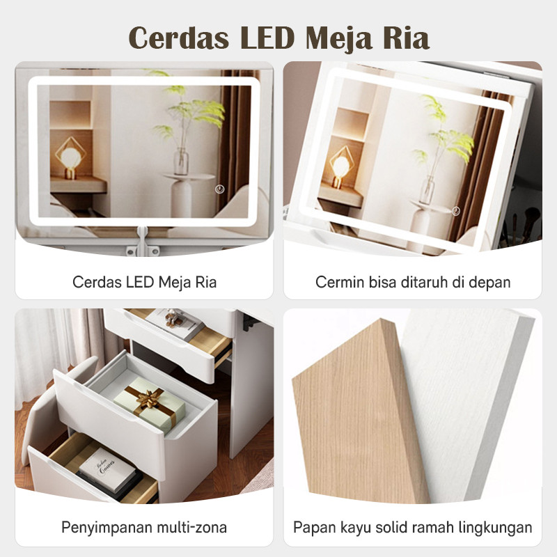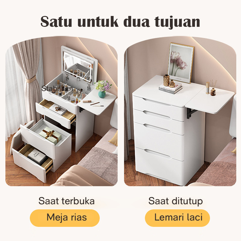 LED Meja Rias 3 Warna Cermin Cahaya Lemari Susun Minimalis Lemari Laci Meja Rias Lipat ly