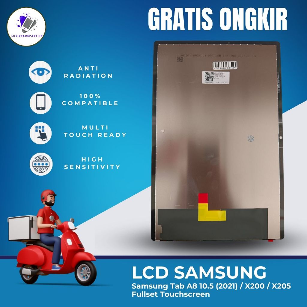 (GARANSI LEM) LCD Samsung Tab A8 10.5 (2021) / X200 / X205 Fullset Touchscreen