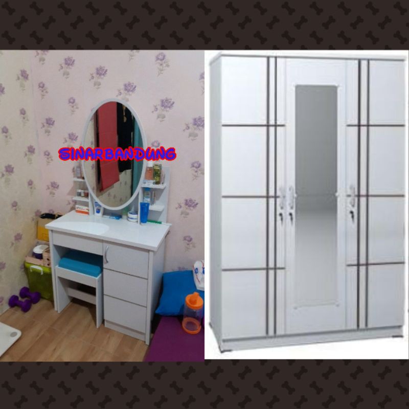 KAMAR SET LEMARI PAKAIAN MEJA RIAS PUTIH MINIMALIS