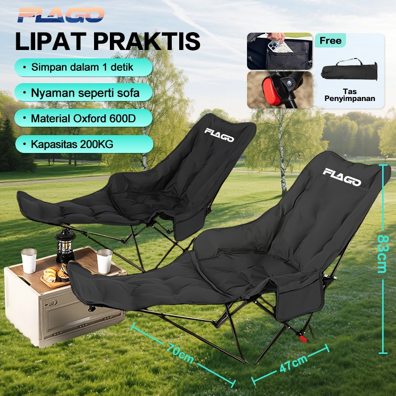 FLAGO Kursi Lipat Outdoor Sandaran Kaki Kursi Pantai Lipat Portable Kursi Santai Kursi Berkemah
