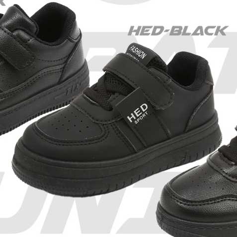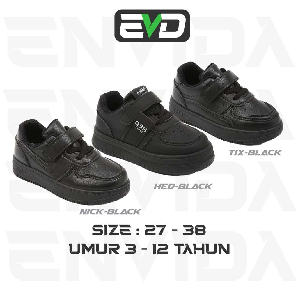 ENVIDA - Sepatu Anak Sekolah Hitam SD Laki-Laki dan Perempuan Unisex Casual Premium Perekat Velcro Umur 3-12 Tahun Kode