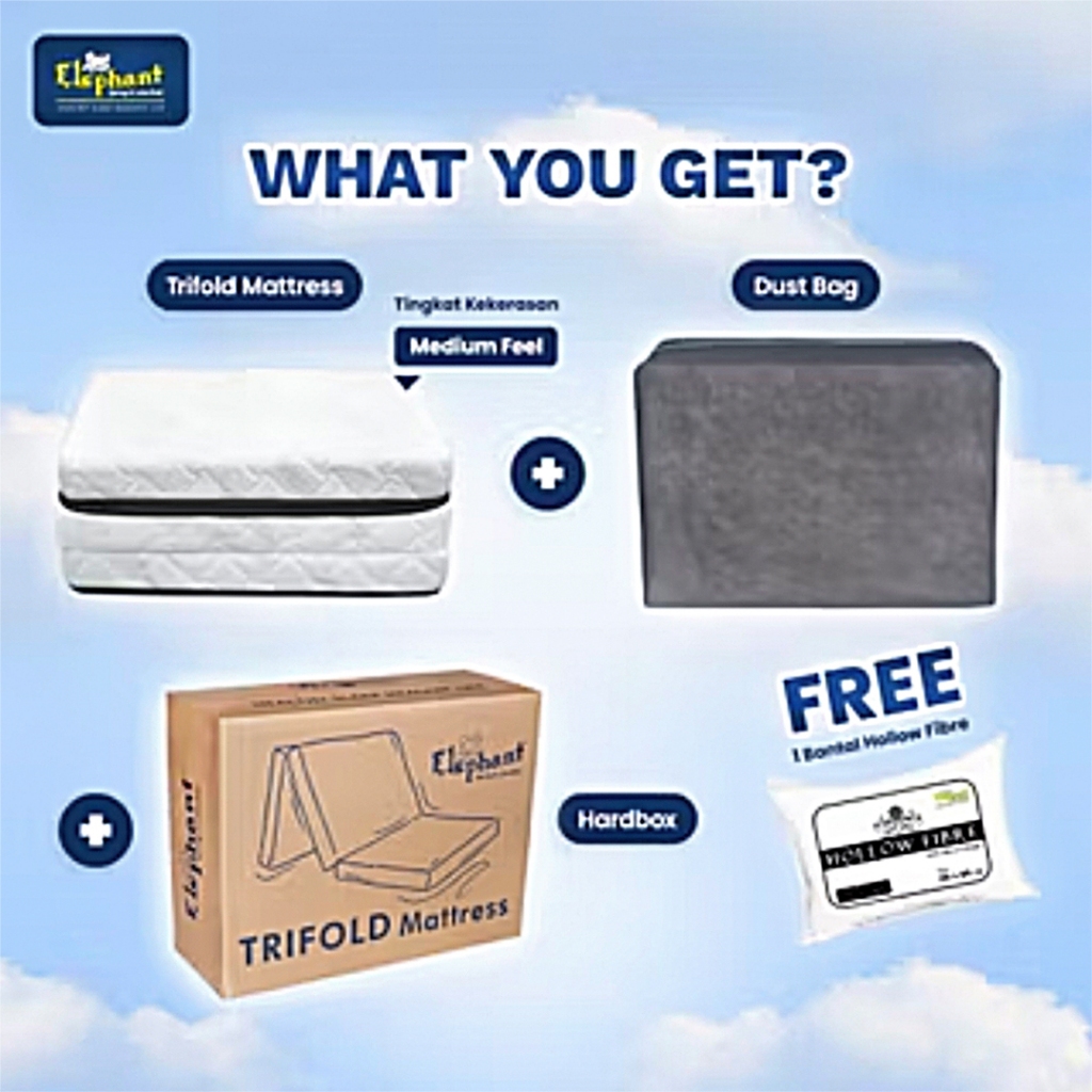 Elephant kasur lantai lipat 3 Trifold busa rebounded (Bonus bantal)